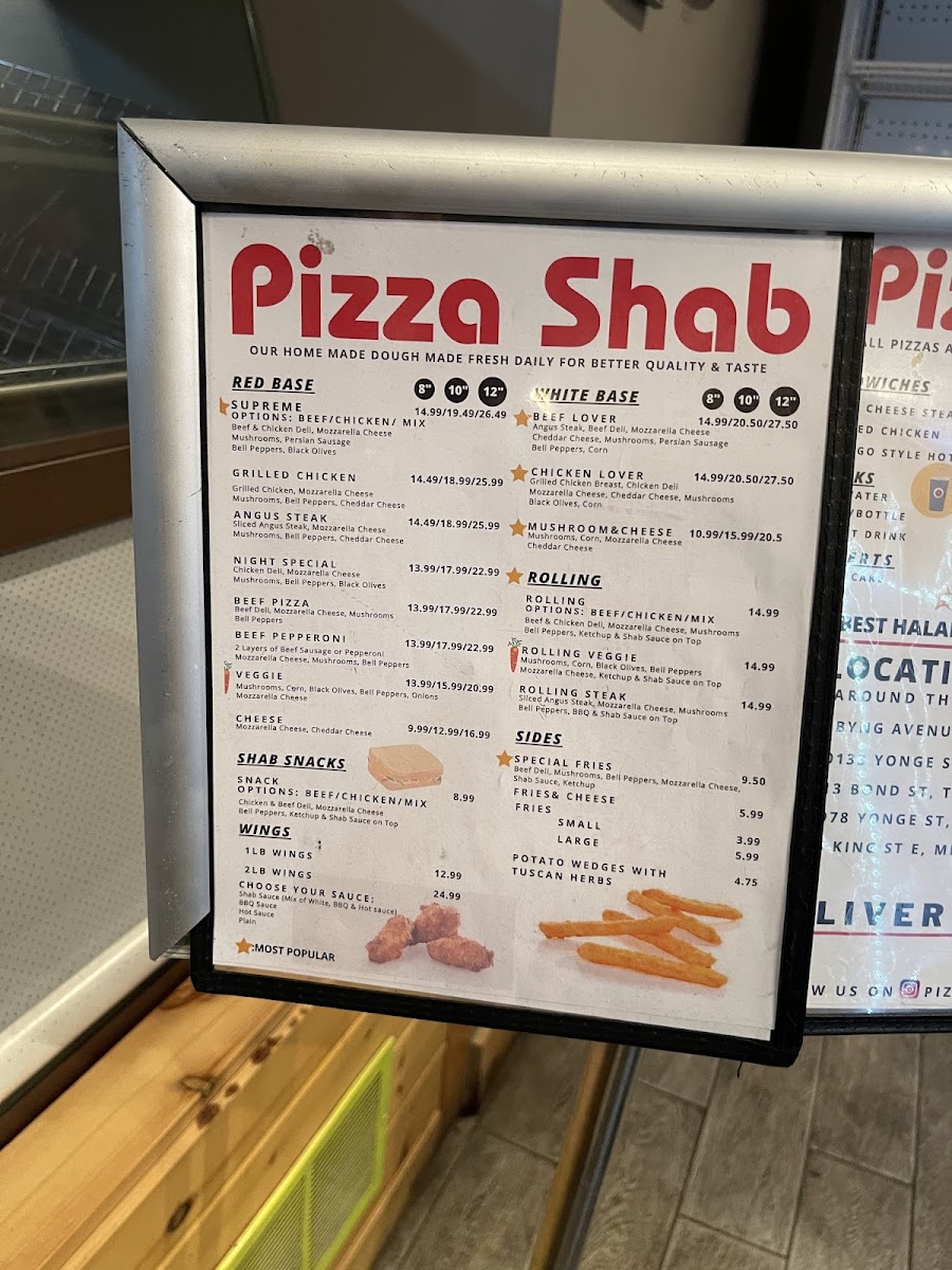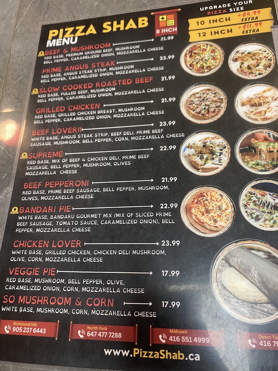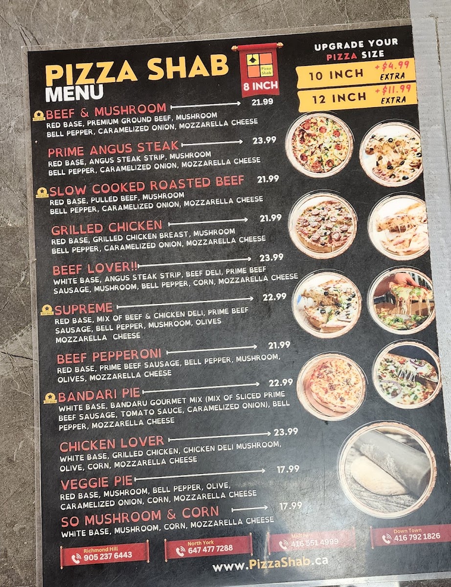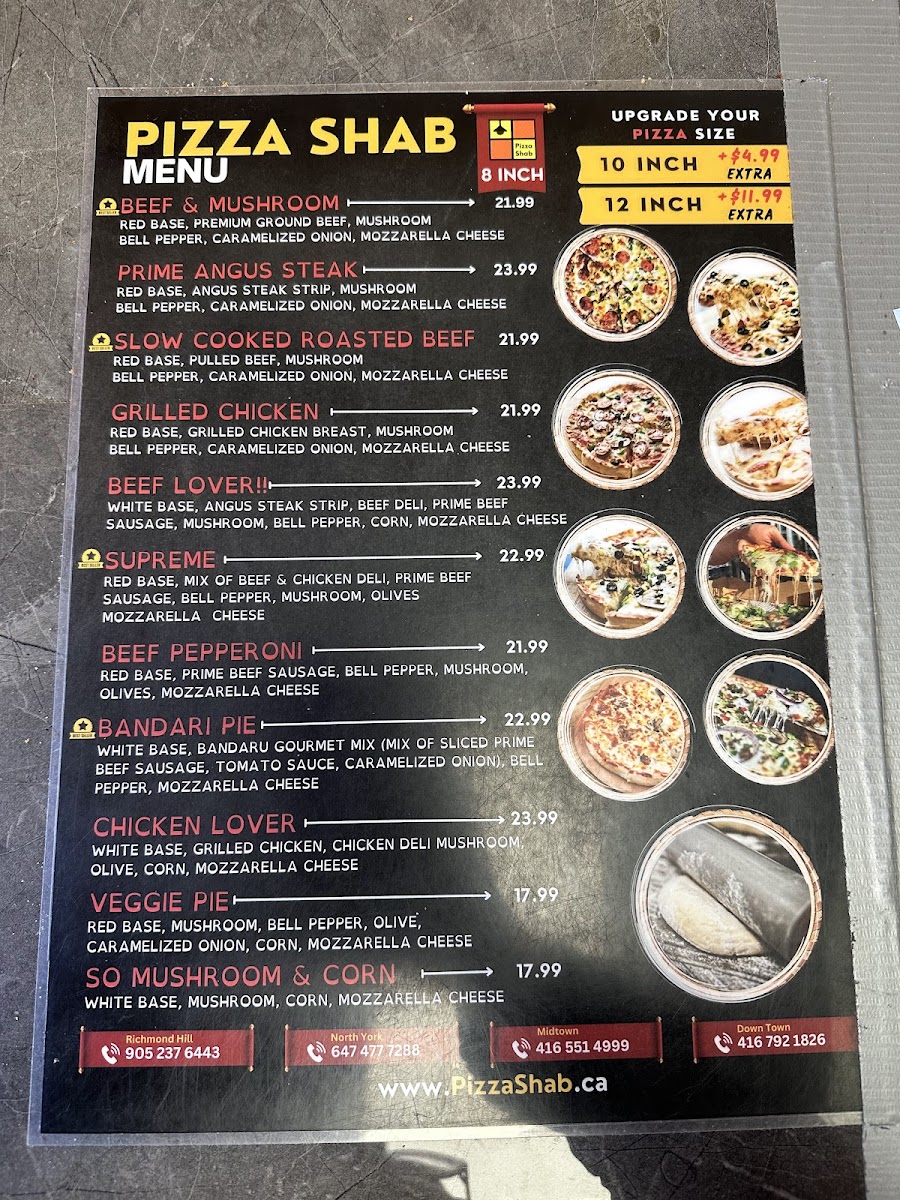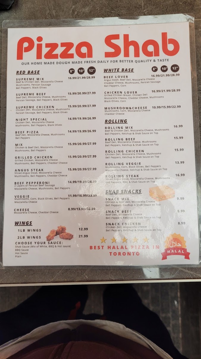 Located in North York, Canada, Pizza Shab is a haven for pizza lovers, especially those seeking halal and Persian-style options. Their menu boasts a delightful mix of flavors and generous toppings that cater to diverse tastes. Signature offerings include the Mix Mix Pizza, featuring a harmonious blend of beef and chicken jambon, complemented by vibrant veggies and melted mozzarella, all for CA$12.00. Chicken enthusiasts will relish the Chicken Lovers pizza, which combines grilled chicken with a melange of toppings for CA$16.00.
